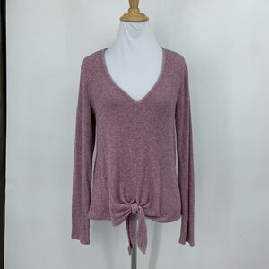 Saturday Sunday Emilia Brushed Fleece Top Size XS Anthropologie Front Tie V Neck