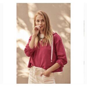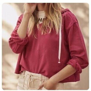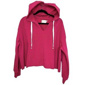 Saturday Sunday Starry Cropped Hoodie Pink Anthropologie LARGE Hooded Sweatshirt
