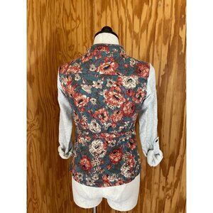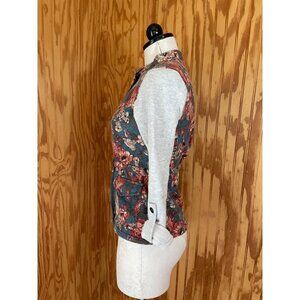 Saturday Sunday Top Blouse Long Sleeve Pockets Knit Lace Tie Floral Gray Sz XS