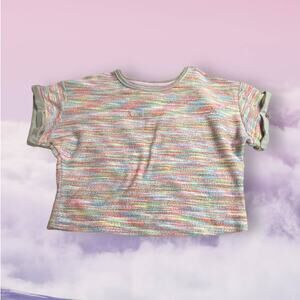 Saturday Sunday by Anthropologie Rainbow Gray Knit Cropped Sweatshirt Size Med