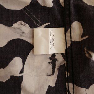 Black and Cream Floral Patterned Short Sleeve Button Down