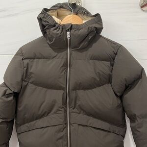 The Tomo Puffer Jacket is our take on the winter classic. Built with a matte, water-resistant nylon with a brushed finish for softness, a heavyweight down fill, and interior/exterior quilting. Featuring utility details like easy-entry front flap pockets, adjustable bottom opening, high-neck hood for warmth, locker loop, and large inner pocket for stowage.