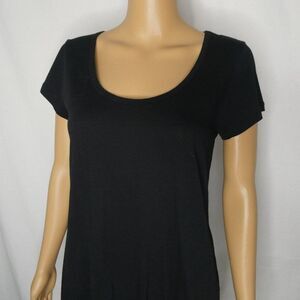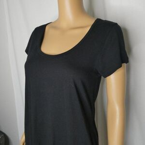 Black organic cotton t shirt with scoop neck and handkerchief hem. In excellent condition.
