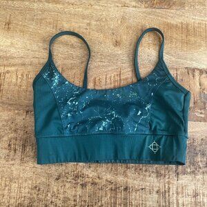 Satva Women Small Sports Bra Green Space Dye Athletic Running Yoga Workout.