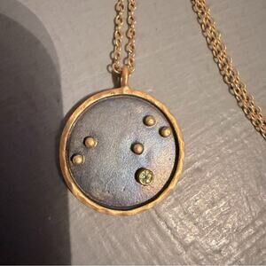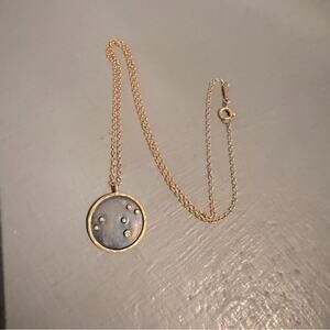 This zodiac constellation necklace is handcast in matte 24kt gold plated-with a gunmetal face cancer constellation with a faceted white topaz, the cancer sign is stamped on the back.