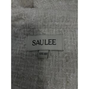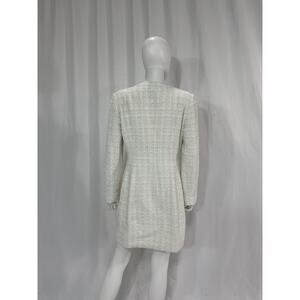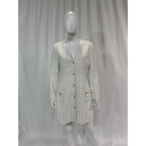 Sau Lee 'Audrey' White Dress Size 10: fully lined, acrylic pearl front button closure, front pockets, tweed fabric with frayed trim.