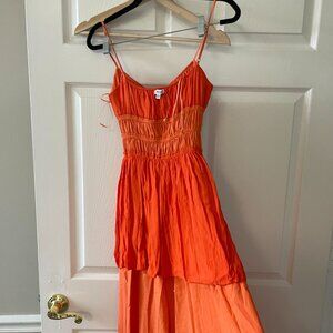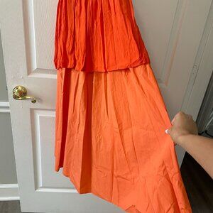 -Crisp poplin fabric with ruffle hem and side seam slit.