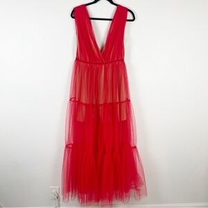 Sau Lee Chloe Tulle Maxi Dress Red Formal Evening Party