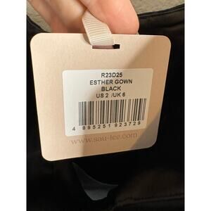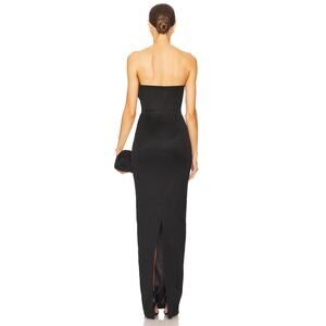 Chic and sophisticated, the Sau Lee Esther Strapless Gown in black satin features an elegant bow detail and modern cut-out design. Perfect for formal events, galas, or evening occasions, this gown makes a striking statement with timeless allure.
