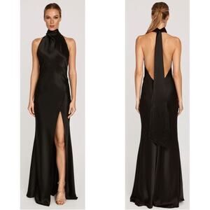Sau Lee Black Penelope Halter Tie Neck Maxi Gown Size 8 is brand new with tags!