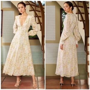 Sau Lee Phoebe Long Sleeve Floral Midi Dress