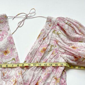 Pink floral (100% Ramie). Hourglass. V-neck. Short sleeves. Back zipper closure.