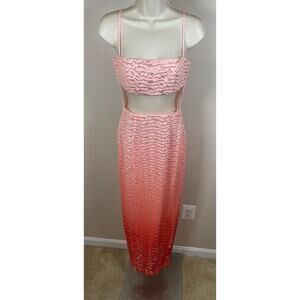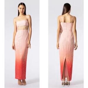 Sau Lee Talia Blush Red Ombre Sequin Mesh Cutout Maxi Dress Size 0