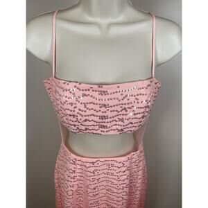 Sau Lee Talia Blush Red Ombre Sequin Mesh Cutout Maxi Dress Size 0 has been worn once and is in excellent condition!