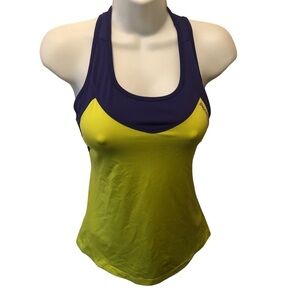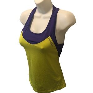 Saucony Bra Top Racerback Tank Zip Pocket On Back Size S Purple/Chartreuse Bike