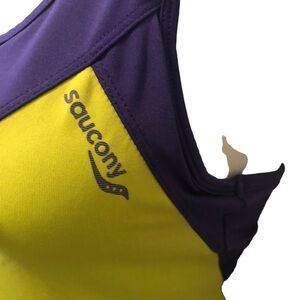 Saucony Bra Top Racerback Tank Zip Pocket On Back Size S Purple/Chartreuse
