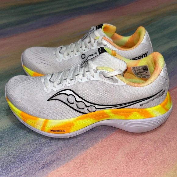 Saucony Endorphin Trainer Running Shoes in White Black Yellow Orange Women's 8