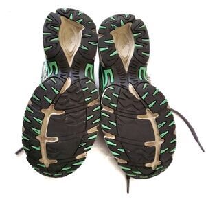 General normal wear on most of shoe. Some staining of midsoles. One missing aglet on one of the laces. One small hole in the mesh of each shoe on the pinky toe side. Can probably be sewn up or just worn as is. See closeup pics.