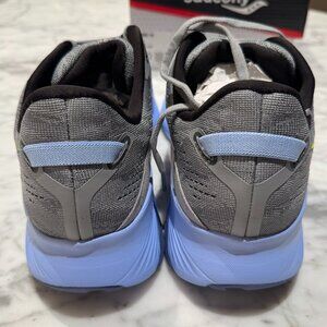 Brand new, never worn beautiful pair of well-respected Saucony running shoes, the Guide 16 in the light blue/gray combination, Fossil/Ether. The almond shaped toe box provides ample room for comfort while running or using in the gym. They are lightweight, padded, comfortable especially for problem feet. Work very well for long distances and preferred by many marathoners. This is a stability shoe. The pair was purchased, but also received another as a gift at a similar time. Completely new with original box and packing.