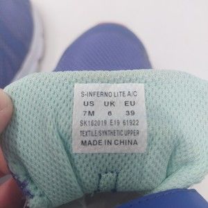 These Saucony Blue and Teal Inferno Lite Running Shoes are in good used condition. These sneakers are comfortable and breathable, perfect for running, walking, casual wear or wearing to the gym. These athletic shoes are bright and colorful.