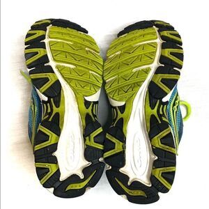 Saucony turquoise and neon yellow Oasis 2 grid running shoes size 7.5. Very good condition.