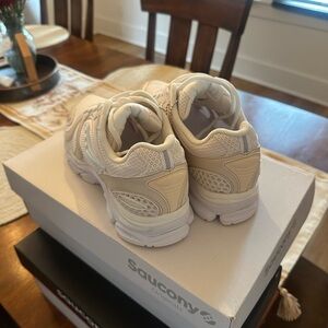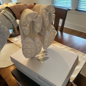 Chic Saucony sneakers in beige and white. Ideal for everyday style. Brand new with box. Never worn. Women’s 8.5