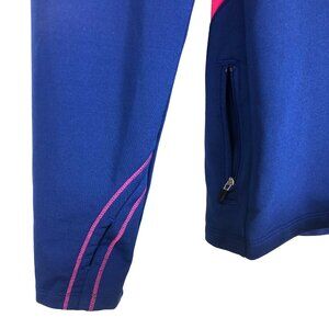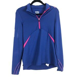 Saucony Quarter Zip Pullover Activewear Top Medium Blue Pink Accents Thumbholes