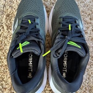 Saucony Ride 16 Running Shoes Sneakers Umbra/Slime/Olive Mens 10.5. It's comfort over everything in the Ride 16. Perfectly balanced with cushioning where you need it, this shoe is truly built to do it all. From the minute you lace up, you'll experience a smooth fit and feel like never before. - PWRRUN foam midsole provides a softer stack of cushioning for your most comfortable run yet - Higher sidewalls allows your foot to sit into the shoe - Category: Neutral - Heel-to-toe Offset: 8mm (35mm heel/ 27mm forefoot) - Weight: Men's 8.8oz (250g) - Sustainability: This Style is vegan and contains recycled materials MSRP $140.00 Pre-owned Customer Return with box. Excellent condition. Like/Near New. Look tried on but unworn.