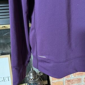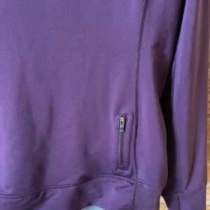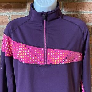 Great condition, very clean! Quarter zip, zippered pocked on back to keep your small belongings. Polyester/spandex blend. Smoke free home.