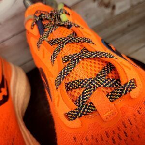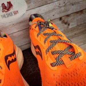 The Saucony Triumph 19 Men's Size 11 Athletic Running Training Walking Shoes in UK size 10 are designed for outdoor activities like walking. These low-top sneakers feature a solid orange color with a cushioned, lightweight, and breathable design for maximum comfort and performance. With a standard shoe width and the trusted Saucony brand, these shoes are ideal for men looking for quality athletic footwear for training and everyday wear.