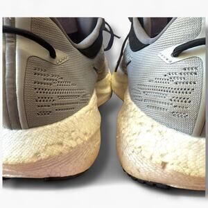 Condition: Clean uppers and solid tread. Cosmetic scuffing/pitting on midsoles near heels—shown clearly. Insoles included.