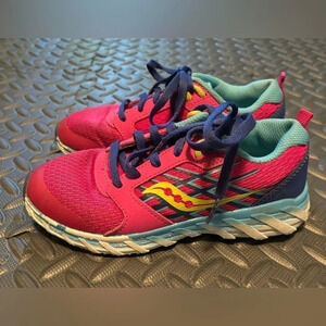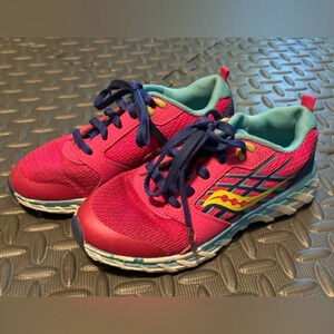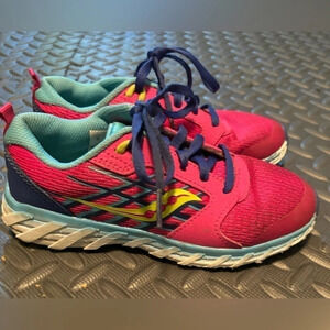 Saucony Wind 2.0 Kids Running Sneakers Gently Worn Pink Lace Up Leather and Mesh