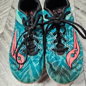 Saucony Womens 6.5 Racing Havok XC Running Track Shoes Teal Spikes S19029-1