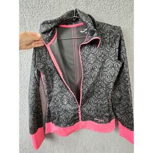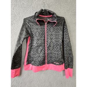 Saucony Womens Athletic Full Zip Running Jacket Size S Small Black Gray Pink