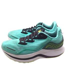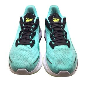 Saucony Womens Endorphin Shift 2 Running Sneakers- Mint Green/Acid Size 10.5. Very good condition! Minor dirt stains on bottoms and a few tiny stains on mesh upper. Nothing noticeable and can be cleaned. Clean inside footbed. From smoke free home.