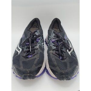 Experience exceptional comfort and performance with the Saucony Xodus Women's size 10 featuring a 4mm offset Powergrid Vibrant Sole. This trail running shoe, in sleek black/purple, is designed to endure the toughest terrains. Used, but excellent condition.