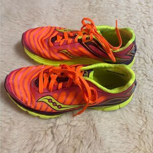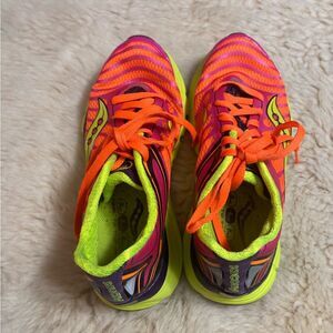 Saucony Pink and Green Athletic Shoes with Dynamic Design