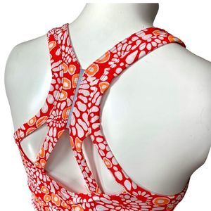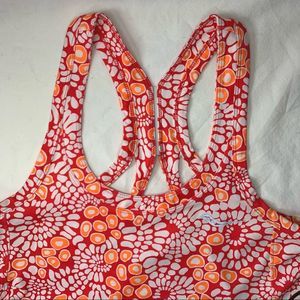 Women’s Saucony Strider Running Tank top, size Small in shades of bright orange patterned print