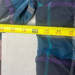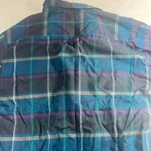 Saugatuck Dry Goods Men's Blue Plaid Flannel Shirt in size XL. Made from 100% acrylic, this shirt features a vibrant plaid pattern in shades of blue, purple, and green. It's perfect for a casual, comfortable look. Excellent pre-owned condition with no stains or holes. Made in China.