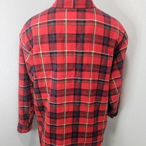 This Saugatuck vintage men's button flannel in 3XL is a relaxed fit, big and tall size shirt perfect for everyday wear. Made from flannel fabric, this multicolor plaid shirt features a classic button-up design with long sleeves and pockets. It is versatile and can be worn in all seasons, making it a stylish and comfortable option for any casual occasion.