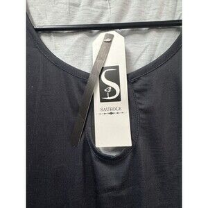 Saukole Dress Womens L Black Sleeveless Tie Pockets Round Neck