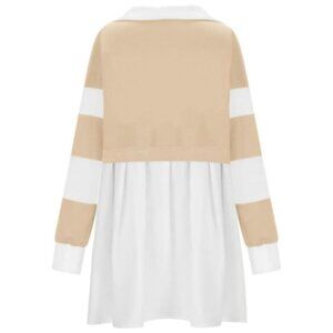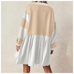Stand out from the crowd with this women's spring-summer oversized sweatshirt dress featuring patchwork detailing. The color block adds a playful and eye-catching element to the dress, making it a fashion-forward choice.The patchwork design adds texture and visual interest, elevating the overall look of the dress.