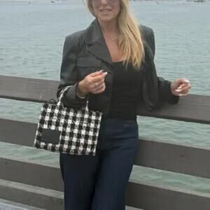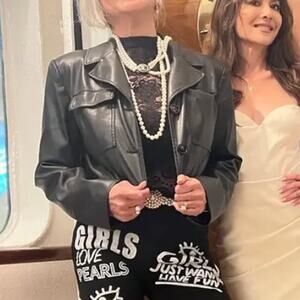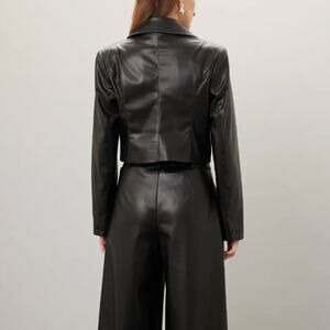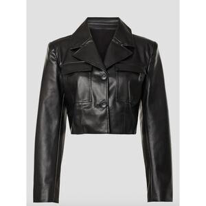 Saunders Black Faux Leather Moto Jacket SIZE 12 Cropped Biker Punk Designer $325