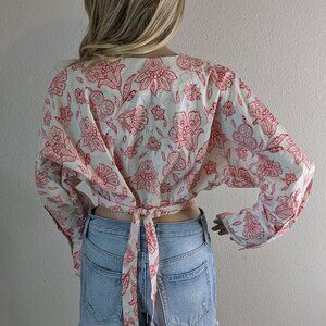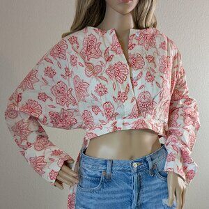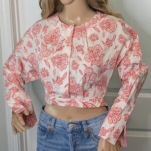 Saunders Collective Frederique Crop Top Size 2 Red/White Dolman Long Sleeve Blouse