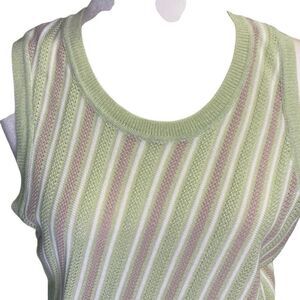 Designer Saunders Collective Women Green & Pink Sleeveless Knit Sweater Tank Top Size XL