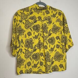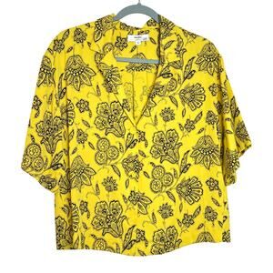 Saunders x RTR Short Sleeve Button Up Floral Rox Top in Yellow Size 6