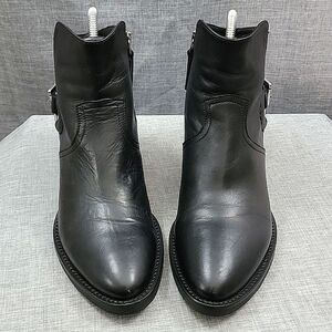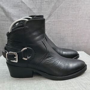 Sauro Cruciani Women's Black Leather Western Moto Harness ankle bootie SZ 37.5