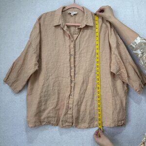 Sauths Shirt Womens Medium Beige 100% Linen Button Front Oversized 3/4 Sleeve