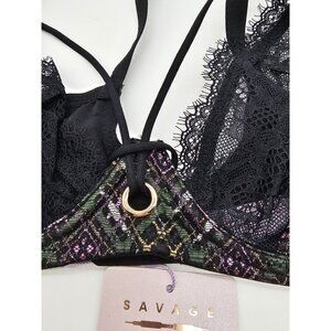 Savage Fenty Bra Women's Size 36C Black Underwire Sheer Lace Little Tart Unlined