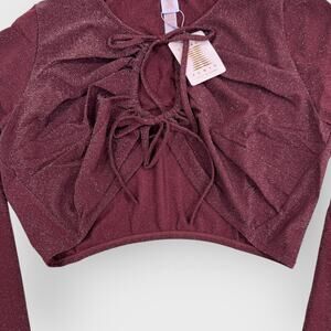 Savage Fenty Sleep & Shing Long Sleeve Crop Tee | Plus Size 3X | Maroon Glitter